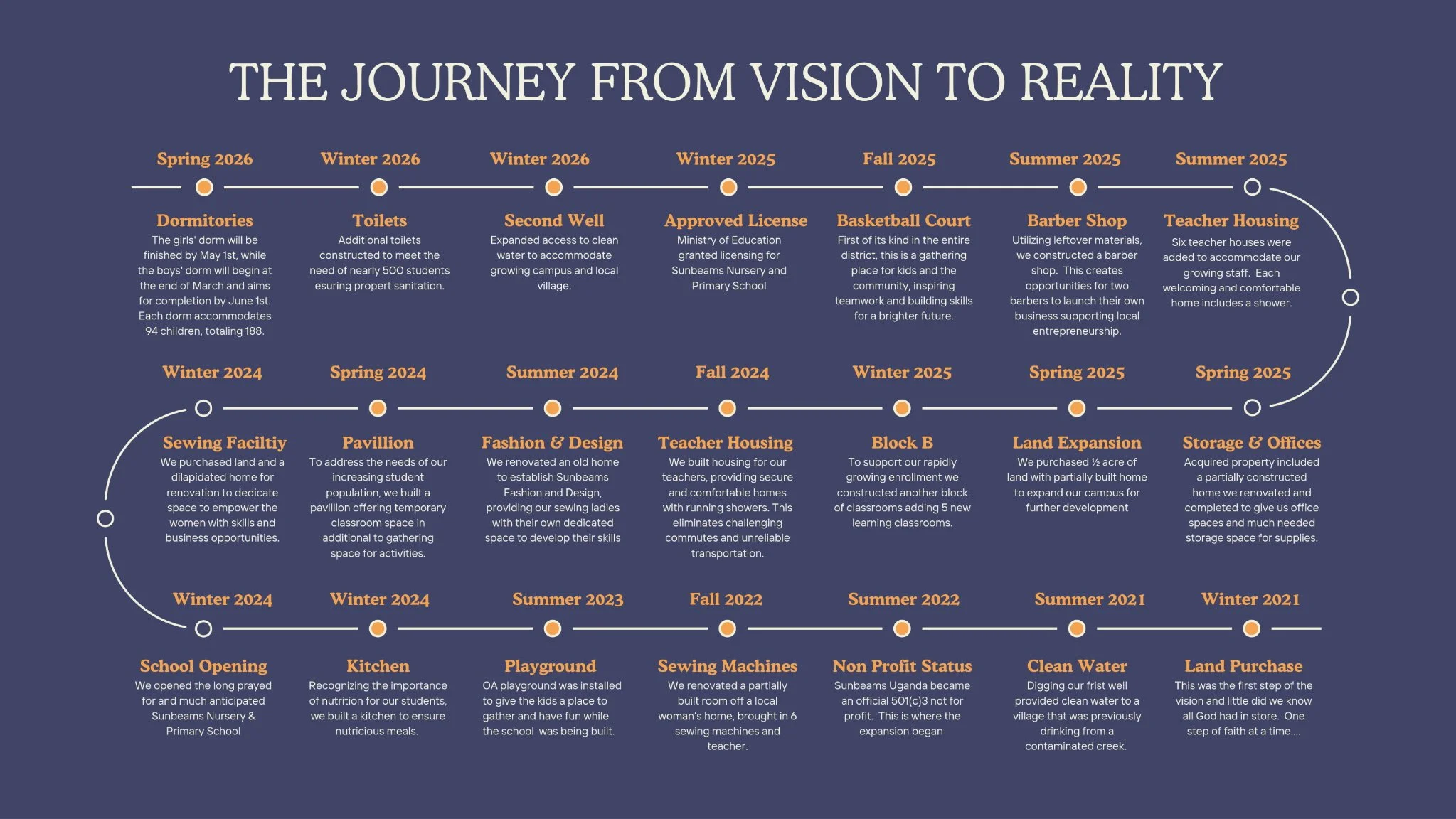 This timeline is not just a record of what has been built—it is a witness to what God has done.